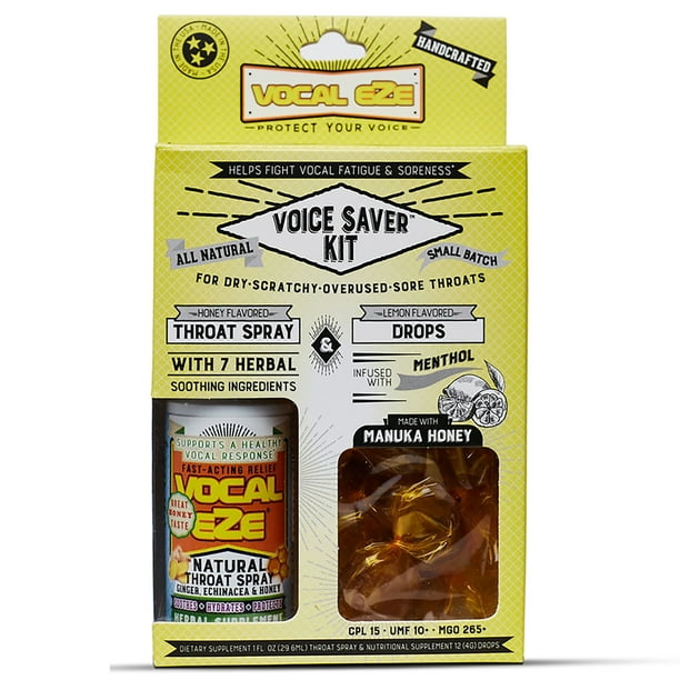 Vocal Eze Voice Saver Kit Includes Vocal Throat 1 Bottle And 12 Pieces Lemon Manuka Honey Relieve Horse Fatigue Dryness Of Throat Walmart Com